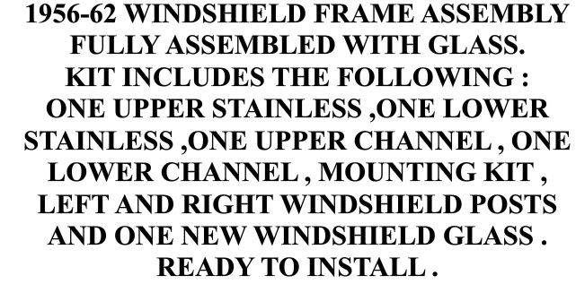 1956-61 CORVETTE WINDSHIELD FRAME ASSEMBLY WITH CLEAR NON-DATED GLASS. (WITHOUT HOLES FOR SUNVISORS) COMES COMPLETELY ASSEMBLED.