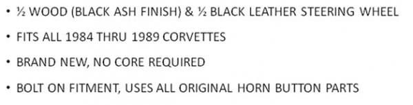 [ click image to enlarge ] E15258 WHEEL-STEERING-BLACK LEATHER-BLACK ASH WOOD-DIRECT FIT-84-89